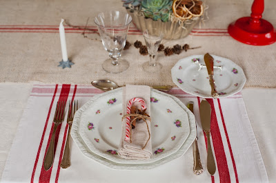 Så fint dukat och visst är det roligt när ärvt porslin kommer till användning. Löparen blev julig och praktiskt med kökshanddukar, alltid blir det något spill!